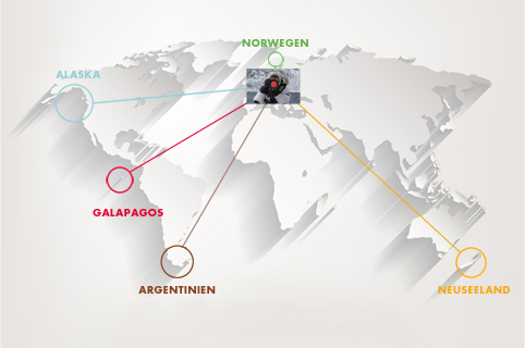 Lassen Sie sich in die Wildnis Alaskas, Norwegens, Neuseelands, Argentiniens oder der Galapagos-Inseln entführen und von ihrem Zauber inspirieren.